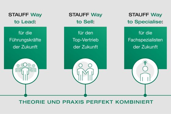 Die Fortbildungsprogramme sind in drei bzw. in vier Stufen aufgebaut. Einer ausführlichen Einführungsphase folgt stets die Qualifizierungsphase, in der die Weichen für das zukünftige Aufgabengebiet gestellt werden. Die anschließende Spezialisierungsphase konzentriert sich auf den genauen Arbeitsbereich bei STAUFF. In besonderen Fällen schließt sich eine zusätzliche Auslandsphase an. Bei herausragender Leistung bietet sich bei STAUFF die Möglichkeit für eine internationale Karriere.