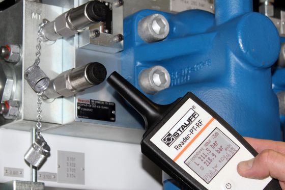 Accumulator adaptors of the types SBAA and SDAA from STAUFF enable the non-contact checking of the accumulator pressure of hydro-pneumatic bladder and diaphragm accumulators in conjunction with the innovative PT-RF pressure transmitters and a corresponding reader – quickly, easily and without any loss of pressure.