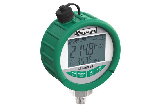 STAUFF presents the well-known and proven SPG-DIGI digital pressure gauges for the digital measurement and display of pressures in hydraulic machines and systems in a revised design. A new version for the measuring range -1 ... 5 bar (corresponds to -14.5 ... 72 PSI) has also been added to the range.